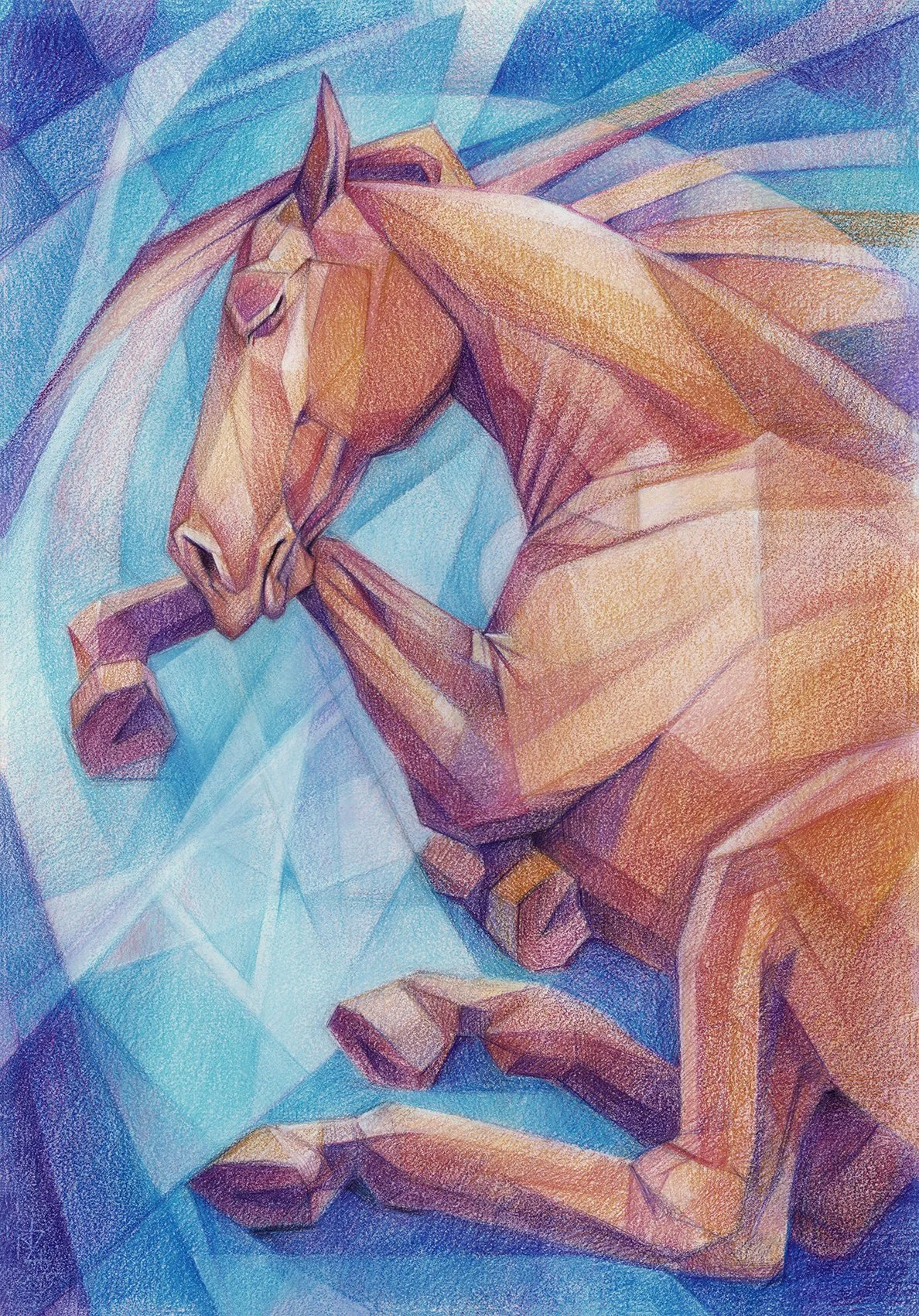 In this piece, the horse refracts through the depth of sleep like a crystal forming in water. It does not dissolve in the soft medium; instead, it gains structure, density, and inner clarity. Here, refraction is not about altering the form, but about revealing it — the ability to remain intact within the realm of illusion and to emerge from it without losing one’s essence.